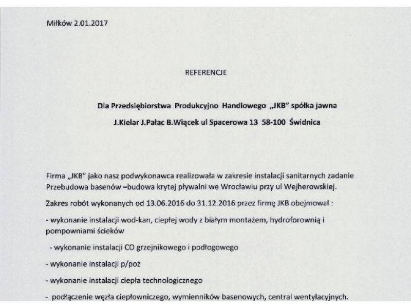 PODWYKONAWCA wewnętrznych instalacji sanitarnych, grzewczych i technologicznych.